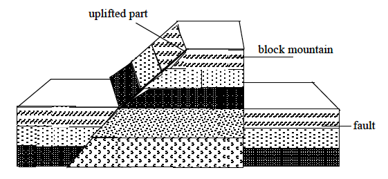 (a) The crustal rock to fault. When faults develop produce feature like plateaus, basin, Block Mountain (host) and escapements.